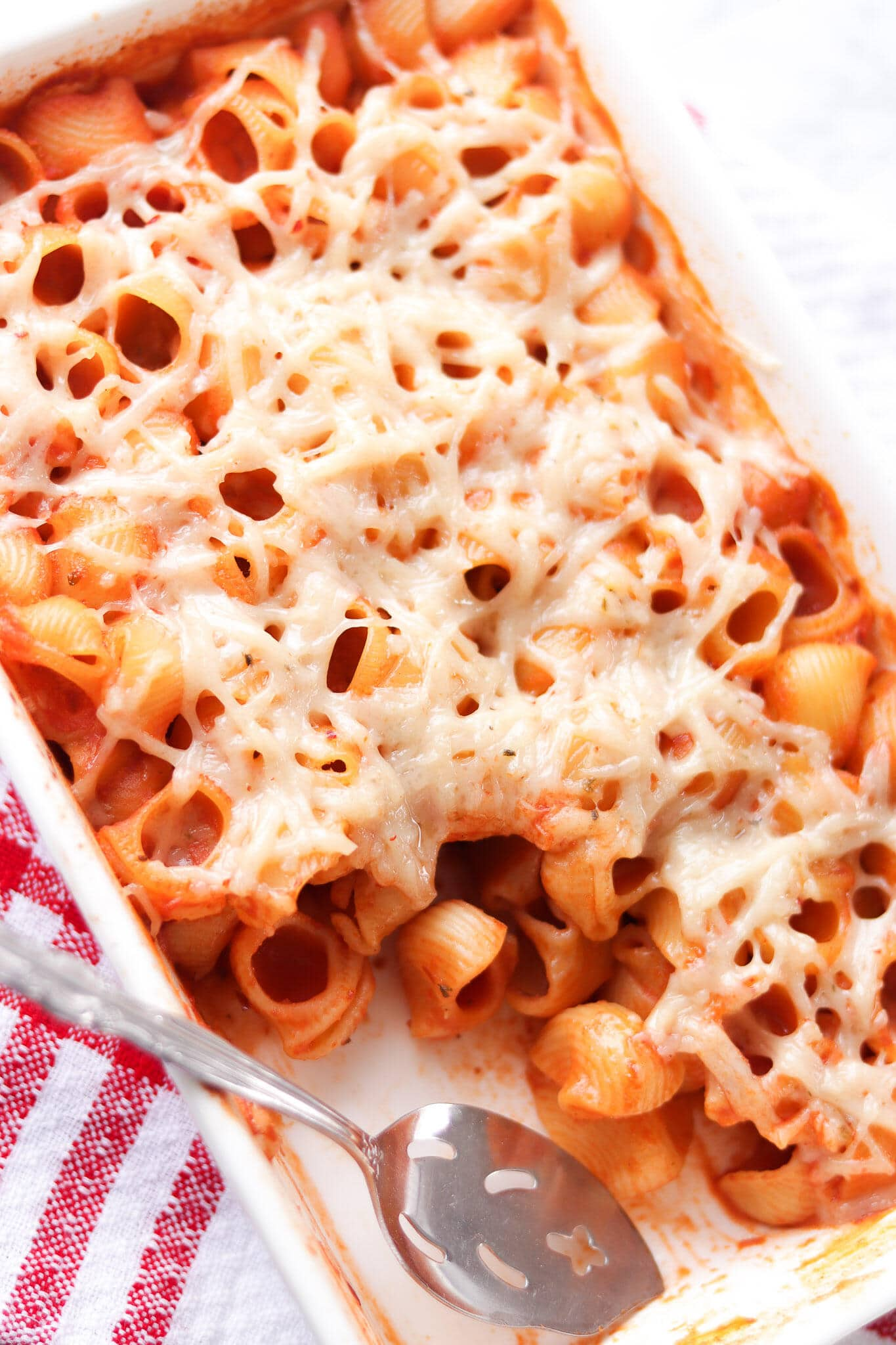 How does this work? You simply mix the ingredients (dry pasta, coconut milk, veggie broth, onion/garlic powder, chilli flakes and tomato paste, then pop everything into a baking dish and bake. The broth and milk ‘cook the pasta’ by soaking into the ingredients in the oven. Clever stuff!