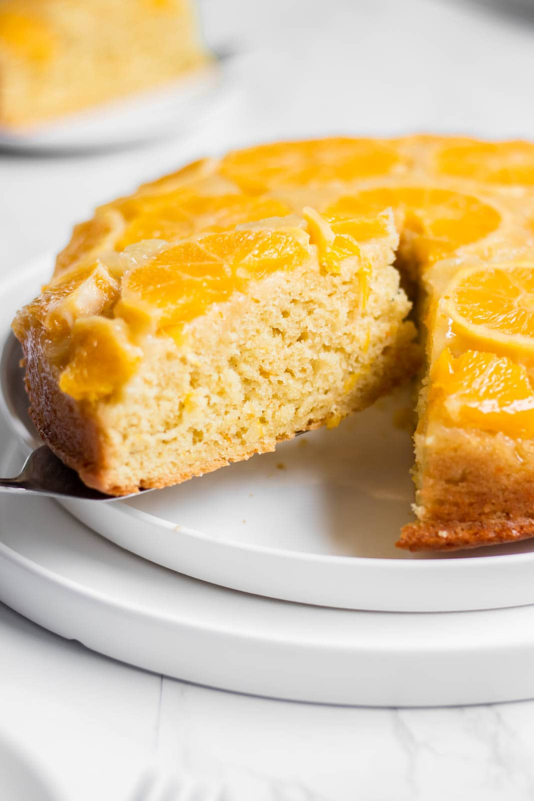 This orange upside-down cake (Happy Vegannie) make a nice change from pineapple! It contains both orange and orange juice, and the cake sponge is made with olive oil, plant milk and flour. Leftovers can be stored in an airtight container at room temperature, for a few days.