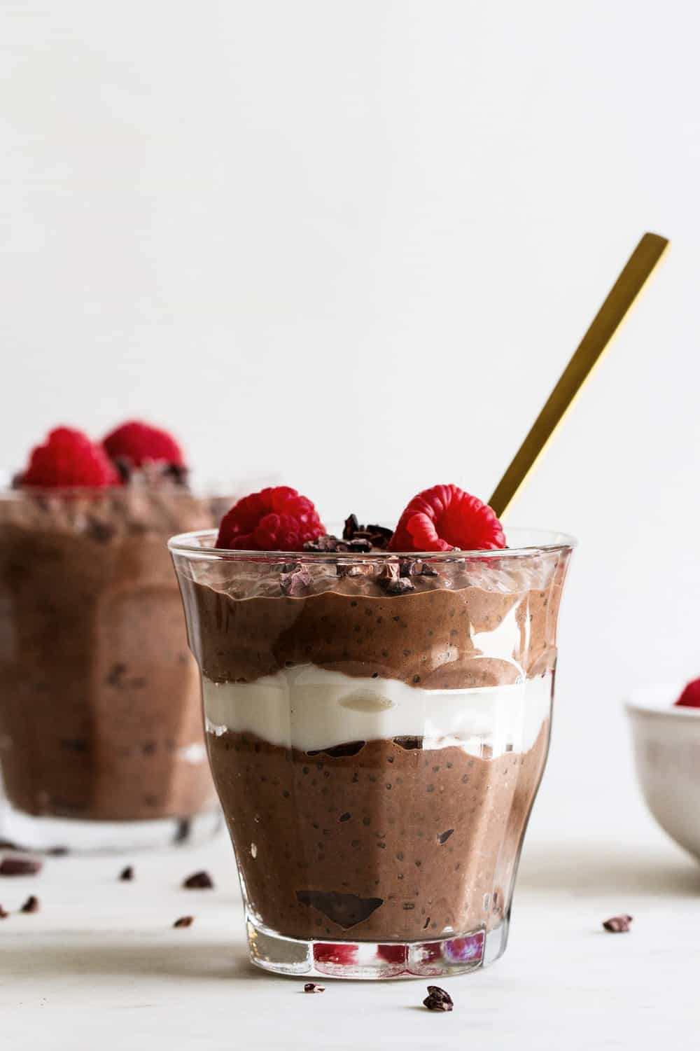 This easy vegan chocolate pudding (The Simple Veganista) is made with vanilla and sweetened with maple syrup. Chia seeds replace gelatine to thicken it up (always mix chia seeds with water first, and avoid for choking hazards).